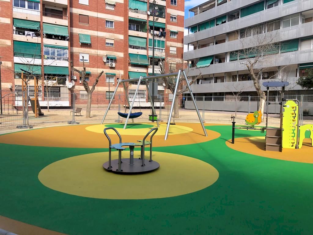 El acondicionamiento se ha producido en áreas de juegos presentes en parque y jardines, y en la vía pública. De las localizadas en parques, se han beneficiado las situadas en Parque Juan XXIII, Parque Hort Lo Torrent (zonas 35-2-3 y 35-2-4) y Parque Presidente Adolfo Suárez (ladera del tobogán). Por parte de las ubicadas en vías públicas, se han mejorado las dispuestas en Plaza del Maestro, Plaza de las Cigarreras, Avda. 3 de abril de 1979 (Plaza Central) y Calle Veterinario Manuel Isidro, esta última es un área de nueva ejecución.